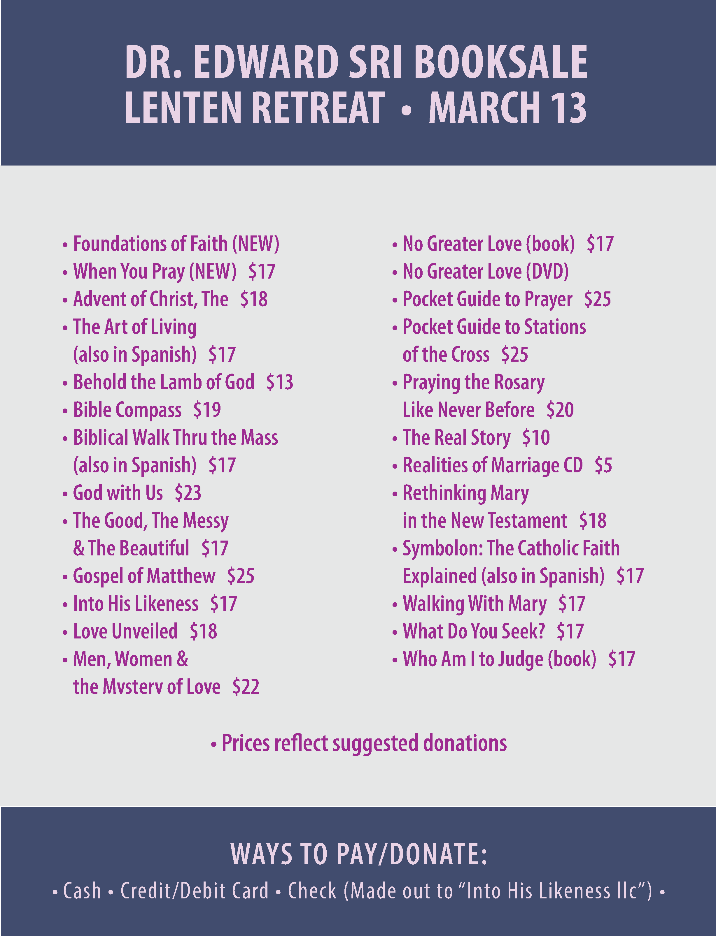 BOOKSALE LIST
