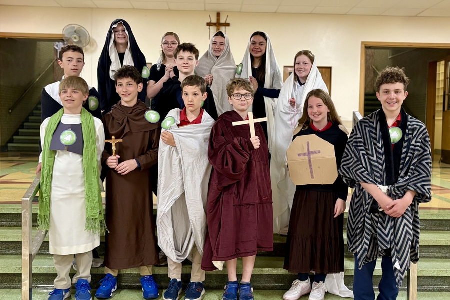 - Middle School: Saint Wax Museum, Living Stations of the Cross, Holocaust Museum and survivor meeting, PI Day, 8th Grade Science Fair Competition